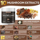 - Ten Mushroom Coffee: Infused with Lion's Mane, Cordyceps, Reishi, Shiitake, Turkey Tail, King Trumpet, Willow Bracket, Agaricus Blazei, Chaga, Maitake, instant mushroom coffee designed to boost energy, focus and overall wellness for your daily routine
