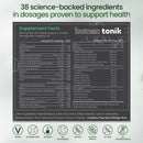 Vitamin A, Vitamin C, Vitamin D, Vitamin E, Vitamin K, Thiamin, Riboflavin, Niacin, Vitamin B6, Folate, Vitamin B12, Biotin, Pantothenic Acid, Calcium, Iron, Zinc, Selenium, Copper, Magnesium, Sodium, Potassium, Spirulina Powder, Collards (Kale) Powder, Spinach Leaf Powder, Barley Grass Powder, Chlorella Powder, Horseradish Tree Leaf Powder, Ashwagandha Root Extract, Bacopa Leaf Powder, Rhodiola Root Powder, L-Theanine, Ginkgo Leaf Powder, Dandelion Leaf Extract, Garlic Bulb Extract, Olive Leaf Extract, Stevia Leaf Extract, Black Pepper Fruit Extract