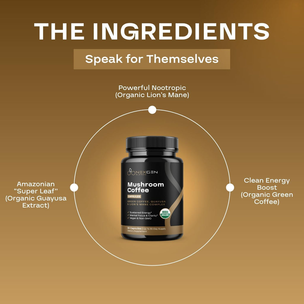 - The NexGen Difference - Say hello to our cutting edge nootropic coffee mushroom focus supplement made with Lab verified clinically studied organic ingredients packed with beneficial antioxidants