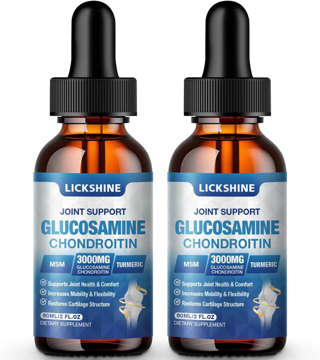 - Support Healthy Joint —— Glucosamine is key for the formation of cartilage, as essential building block for your joints as it helps support mobility and flexibility*. They can repair damaged joints, increase slippery fluid accumulation, and play a role in shock absorption protection. At the same time, MSM can reduce joint discomfort and support healthy joints. Lickshine glucosamine chondroitin liquid drop are ideal for sedentary office workers, sports enthusiasts and adults with joint discomfort.