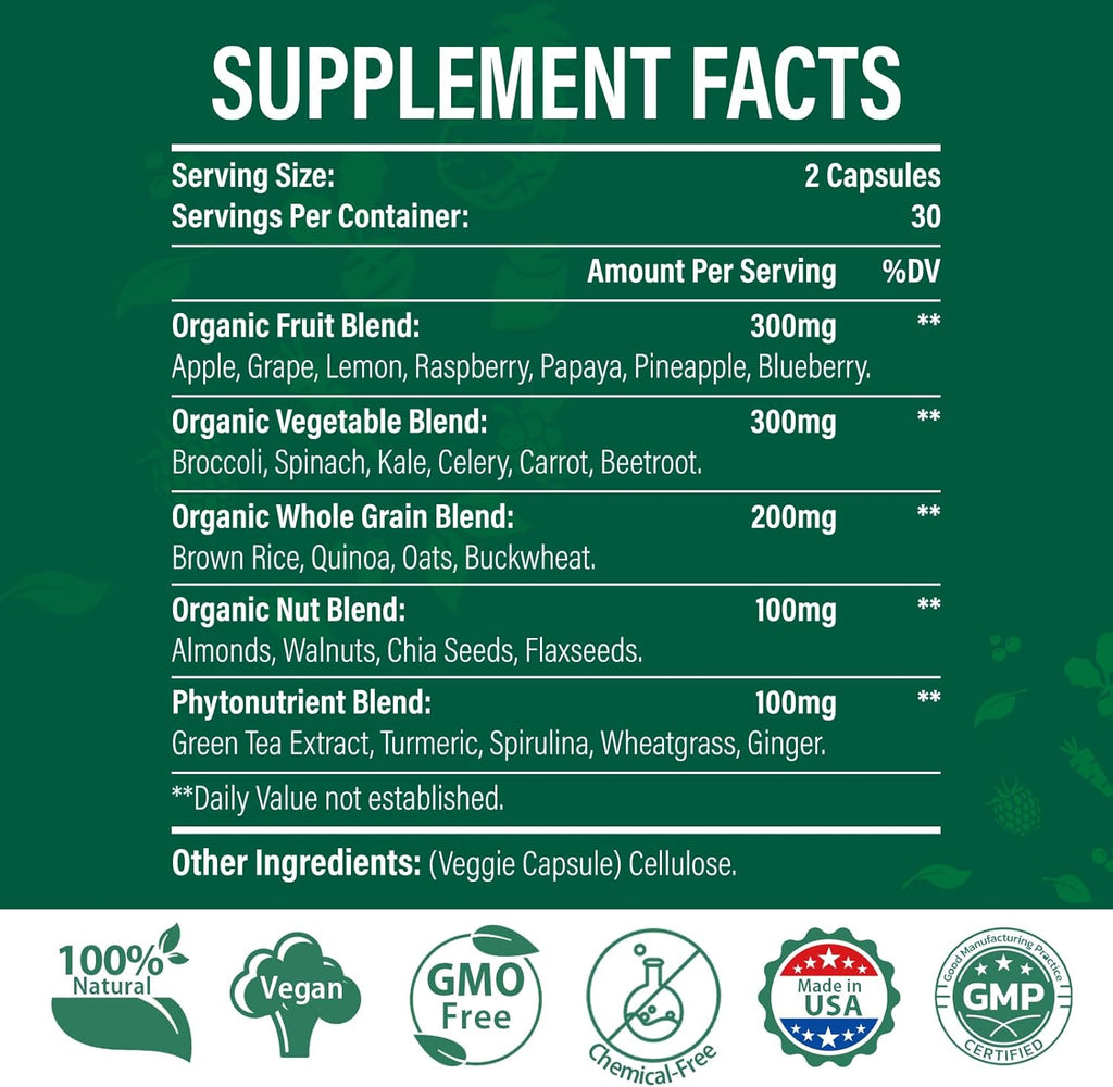 - 2000 MG Superfood Blend: Offer 2000 MG of organic fruits, vegetables, whole grains, and nuts, comprehensive digestive and wellness support. Unlike traditional detox products that focus solely on fiber, DetoxPro goes beyond by offering a multi-dimensional approach that provides antioxidants, supports colon cleansers, and optimizes gut function for long-lasting vitality