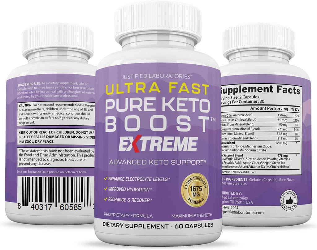 Ultra Fast Pure Keto Boost Extreme Keto Pills New & Improved Formula has a potency of 1675MG compared to our orignal version wich only containted 1200MG. Our proprietary blend includes magnesium, calcium, and sodium which are key nutrients your body can be depleted of during ketosis. You'll also find apple cider vinegar, green tea leaf, and extra virgin olive oil powder in our keto support blend. Our unique proprietary formula can help give your body additional electrolytes and help your body replenish, recharge and recover. Our new formula is specifically designed to help you safely enter Ketosis faster while on a low carb diet.