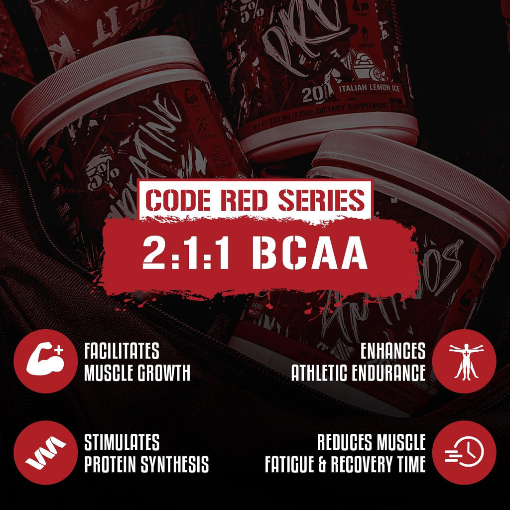 - UNLOCK YOUR POTENTIAL with recovery-enhancing Code Red Aminos. Anchored by L-Leucine, L-Isoleucine, and L-Valine in a precise 2:1:1 ratio, this BCAA blend is your proven weapon for muscle growth, healing and hitting your milestones with confidence.