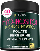 - Powerful 6-in-1 Formula with Clean Ingredients: Myo & D-chiro inositol with Folate, Berberine, Vitamins D3 and K2. Herbpy Myo Inositol Supplement for women's health offers vegan capsules that are non-GMO, gluten-free, and dairy-free.