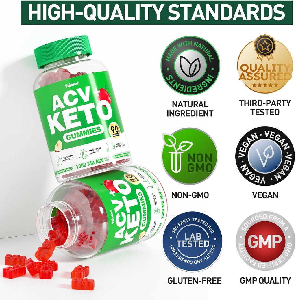 - Natural and Organic: Veloket keto+ acv gummies are made with a blend of Non-GMO ingredients and vegetarian-friendly; Each gummy combines powerful benefits of 5 key components - acv, organic pomegranate, beetroot, carrot and blackcurrant