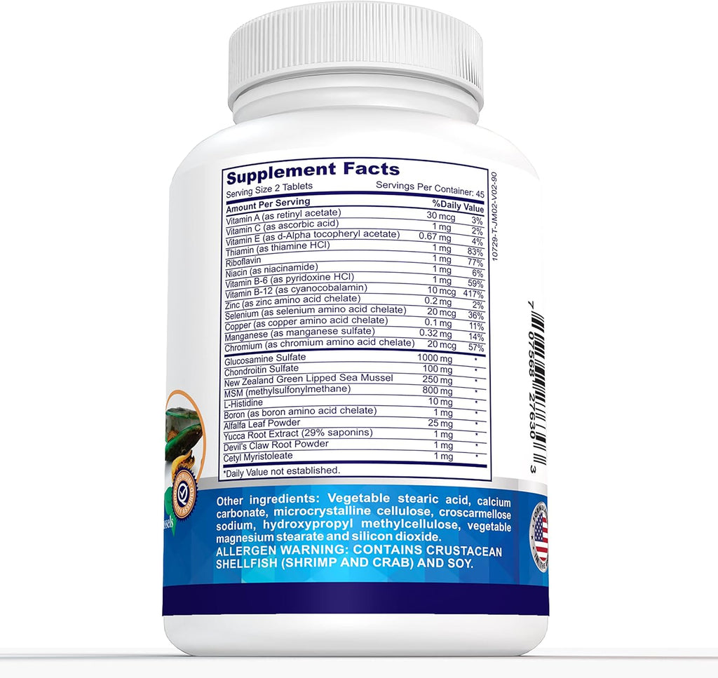 - ★ Scientifically Formulated Joint Complex at an affordable price that targets the root cause and clinically shown to improve mobility, joint comfort and support an active lifestyle. Vitality Span powerful joint relief supplement contains 24 Joint Discomfort Fighting Ingredients including Glucosamine, Chondroitin, MSM, Vitamins A, B6, B12, C, E, Thiamin, Copper, Zinc, extracts of Yucca root, Devils claw, and Alfalfa leaf.