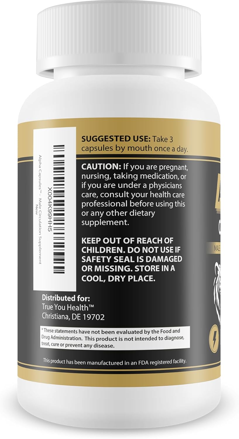 - PREMIUM BLOOD FLOW SUPPLEMENT FOR MEN - Alpha Capsules men's blood flow supplements are designed to help blood flow throughout the body. Packed with vitamins, minerals, amino acids, natural extracts, and antioxidants, these nitric oxide tablets for men provide support for good blood flow, circulation, and oxygen delivery. Our best nitric oxide booster for men helps promote blood flow, boost energy levels, and support overall vitality, making it ideal for anyone seeking l-arginine nitric oxide pills for men or blood flow circulation supplements to enhance their daily wellness routine.