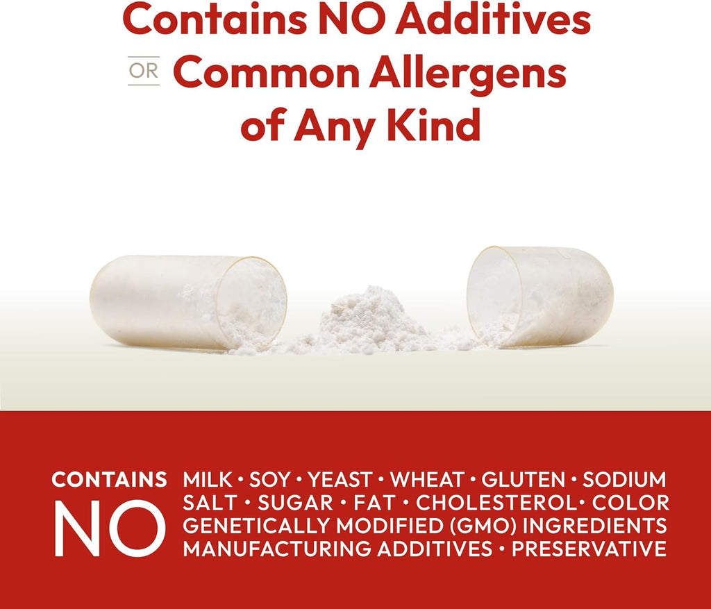 Calcium, Magnesium, Vitamin D3 – CONTAINS NO Milk, soy, yeast, wheat, gluten, sodium, salt, sugar, starch, fat, cholesterol, oil, emulsifier, wax, binder, filler, excipient, lubricant, coating, diluent, flowing agent, common allergens, color, flavor, sweetener or preservative. CONTAINS NO ADDITIVES OF ANY KIND.