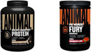 This protein and pre-workout supplement bundle packs a powerful one-two punch for your fitness goals. The Animal Whey Isolate Protein delivers a whopping 25 grams of high-quality protein per scoop to support muscle growth and faster recovery. It mixes easily into a delicious shake, available in Cookies & Cream flavor. Animal Fury Pre-Workout taps into the brand's 30+ years of sports nutrition expertise. It energizes your workout with 350mg caffeine plus muscle-building BCAAs and strength-boosting beta-alanine. The 5 gram BCAA matrix helps delay fatigue so you can push through more reps. Citrulline malate and L-tyrosine stimulate nitric oxide production for incredible pumps. Both Animal supplements are made in the USA under the strictest quality controls. Together they perfectly complement an intense training regimen for men and women athletes. The protein feeds your muscles while the pre-workout ignites them with energy and focus. Fuel your most beastly workouts and see better results faster with this powerful bundle.