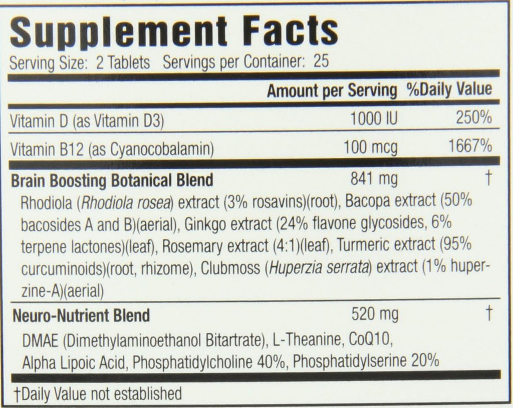 Powerful 3-in-1 Boost Healthy Brain All Day Focus is unlike any product on the market. This unique combination of brain-boosting nutrients is specially formulated to provide benefits in three specific areas: Short-Term: sharpens your mind for enhanced focus and concentration right away. Long-Term: improves memory and information retention, while supplying powerful brain antioxidant to keep you at your best as you age. Plus: supports healthy brain chemistry to promote a positive mood and to help you to feel energized throughout the day. Try this advanced cognitive support formula for 25 days and see how you feel. We're confident that you'll notice the difference. Continue taking this product for three months or more for maximum results. Are You Ready to See Results? This doctor-developed formula combines the very best brain nutrients into 1 bottle .and in just 2 pills per day! Vitamin D3 and Vitamin B12 are essential nutrients that support optimal brain function.Ginkgo extract improves circulation to the extremities and brain, enhances memory and is a powerful brain antioxidant.L-Threanine is a calming nutrient found in green tea that supports a state of "alert relaxation."CoQ10, Turmeric, Rosemary and Alpha Lipoic Acid are some of the very best antioxidants for protecting the central nervous system.Rhodiola extract helps to elevate mood and brain energy.Phosphatidylserine & Phosphatidylchloline are important building blocks for healthy cell membranes in the brain.DMAE and Huperzine-A may help to increase levels of acetylcholine (a key brain chemical that plays a role in memory).Bacopa extract contains memory-enhancing chemicals called bacosides.