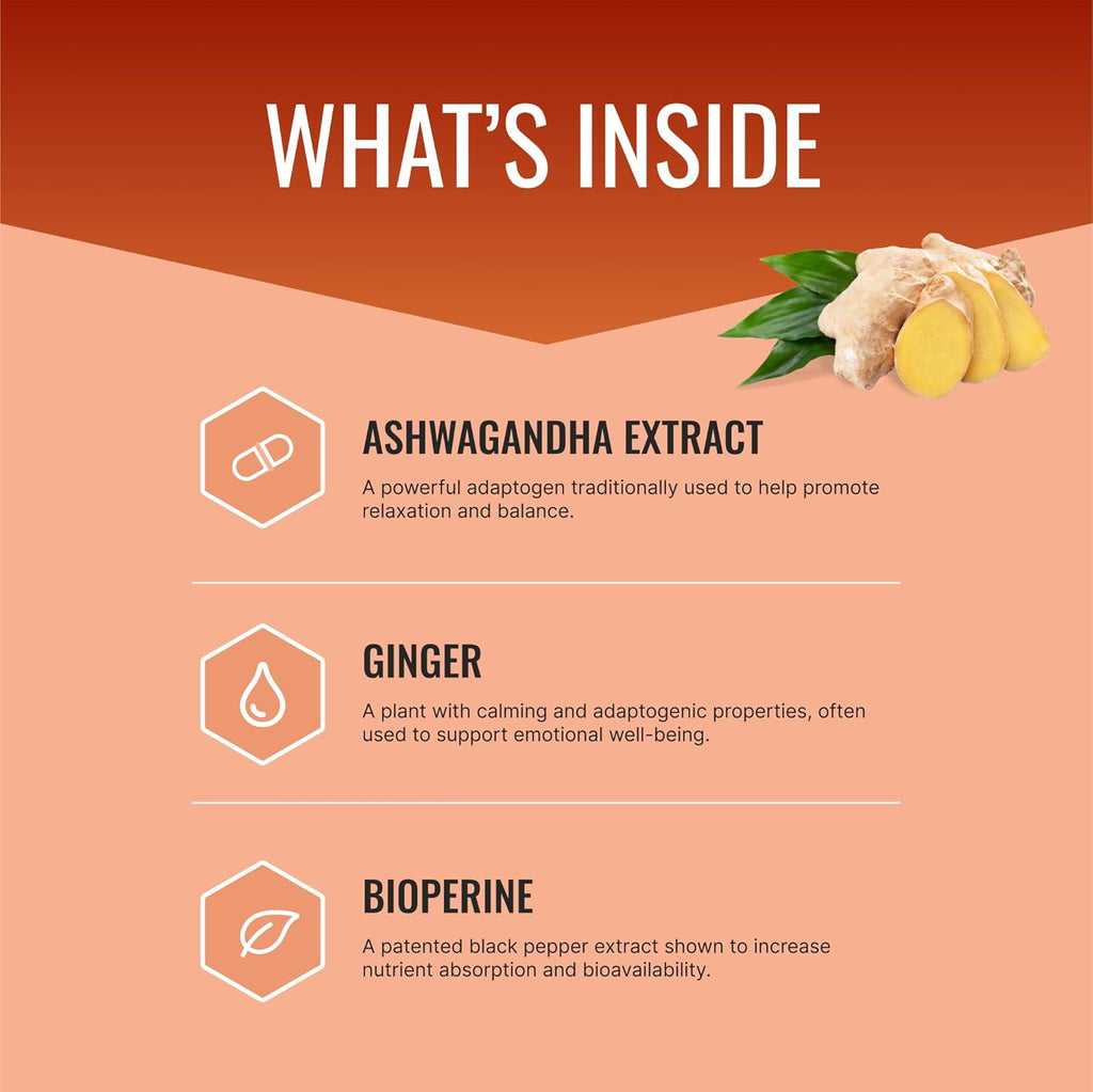Ashwagandha, Bioperine®, Ginger (Zingiber Officinale Root Powder).