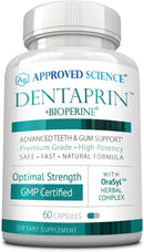 Approved Science Dentaprin provides essential vitamins and minerals as well as herbs and collagen for supporting tooth and gum health. Also includes BioPerine for enhancing nutrient absorption to help optimize results. Does not contain any additives, preservatives, fillers, or binders. Third-Party tested and GMP-compliant.