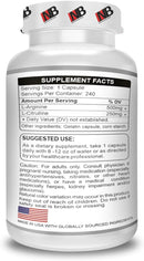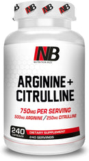 NutritionBizz Arginine and Citrulline 240 Caps 750mg per serving 500 mg Arginine 250mg Citrulline
