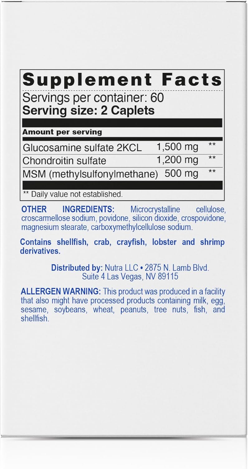 - TRIPLE STRENGTH FORMULA: Contains 1,500mg Glucosamine sulfate, 1,200mg Chondroitin sulfate, and 500mg MSM per serving to support joint health and mobility.