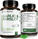 - Garlic and Parsley Benefits – Benevolent Nourishment's Garlic & Parsley supplement is a one-of-a-kind blend of two proven herbs known to support overall health. Get the multiple health benefits of Garlic and Parsley in one soft gel. Beneficial flavonoids and essential nutrients in garlic help support the body’s natural defenses. The chlorophyll in parsley helps to neutralize garlic breath & cancel out the garlic odor on your breath.