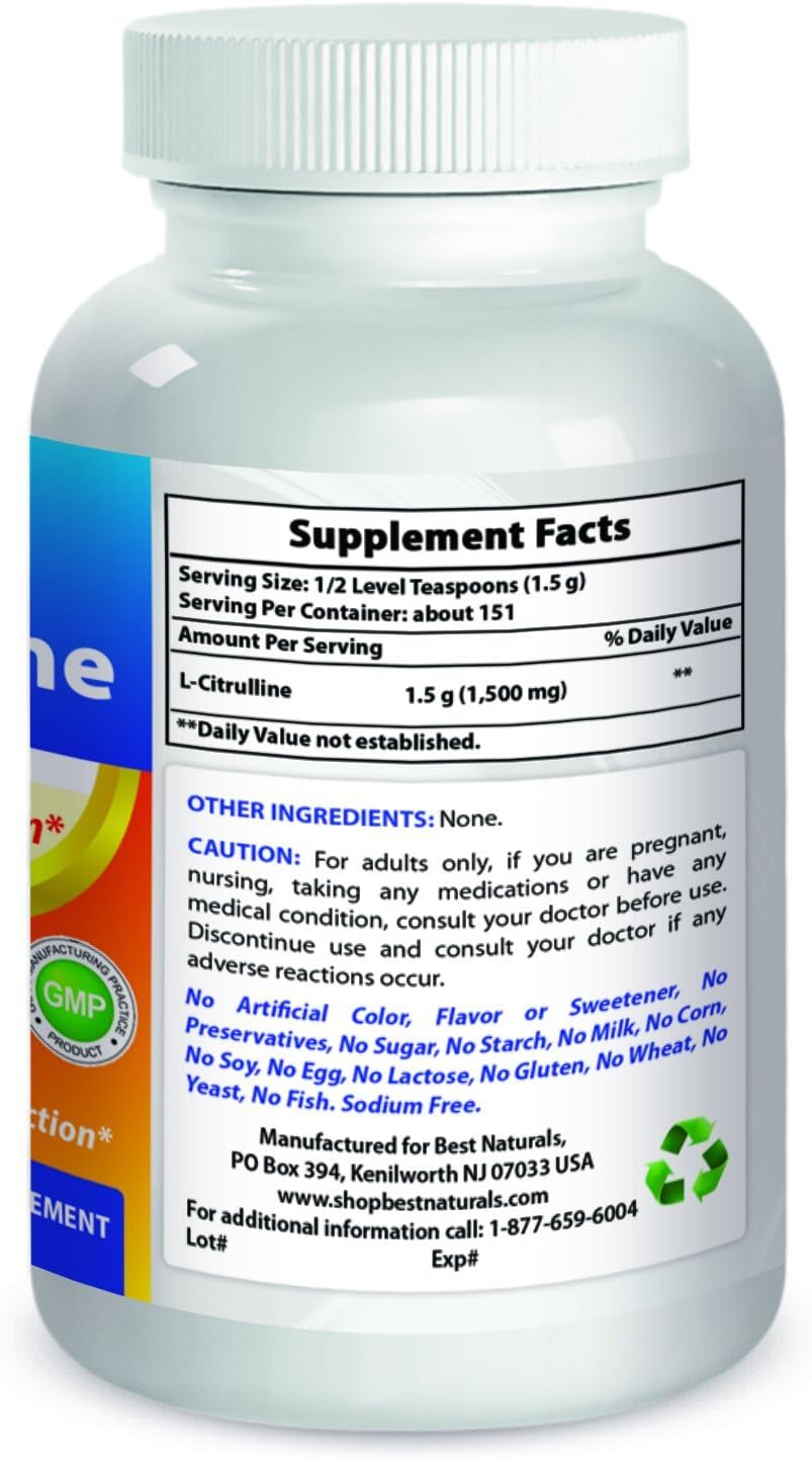 - ½ Level Teaspoon (1.5 g) of L-Citrulline per Serving, 151 Servings per bottle.