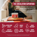 - THE CIRCULATION SUPERFOOD: beet powder has been shown to support endurance & physical performance by increasing nitric oxide naturally. Its ability to improve circulation also drives its ability to optimize blood pressure, brain function, energy levels & cardiovascular health.