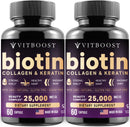 - The Power of Collagen, Keratin & Biotin Complex - Our carefully formulated hair vitamins for thicker hair growth and overall beauty enhancement are crafted to nourish your body from within. Prepare to be amazed by the transformative effects of our biotin supplements, as they stimulate healthy hair growth, enhance skin elasticity, and fortify your nails. Embrace the radiance that comes from nurturing your hair, skin, and nails with Vitboost's exceptional care and dedication.