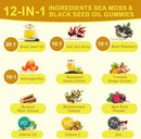 - 【Premium Wellness Formula】: Our products are crafted using carefully sourced, ingredients ensuring you get the most effective and beneficial formulation. Sea moss and Black Seed oil gummies include 12 ingredients such as black cumin seed oil, Irish sea moss, ashwagandha, black elderberry, rapeseed honey, turmeric, burdock root, bladderwrack root, beetroot, vitamin C, vitamin D3, and zinc. The perfect combination of Sea Moss and Black Seed Oil is known for support and overall well-being.