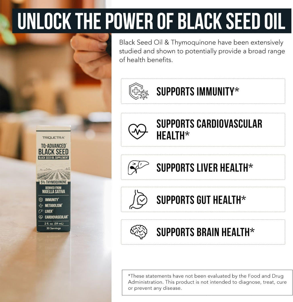 - 5% Thymoquinone (TQ) Most Potent Available: TQ-Advanced- Black Seed Oil Liquid contains 3x to 10x higher Thymoquinone (TQ) levels than leading brands. Thymoquinone (TQ) is the active and most important nutrient in black cumin seed oil that gives it such a wide array of health benefits.*