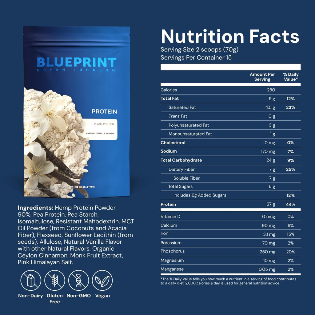 - Complete Amino Acid Profile: Blueprint by Bryan Johnson Hemp Protein Features a complete spectrum of essential amino acids to fuel muscle protein synthesis and overall performance.*