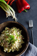Nutritional yeast is a vegetarian dietary supplement with a pleasantly cheesy flavor. It is rich in vitamin B-12, and provides 8 grams of protein per serving. Add to sauces, scrambles, kale chips, crackers and biscuits, or sprinkle over vegetables, baked potatoes or popcorn.