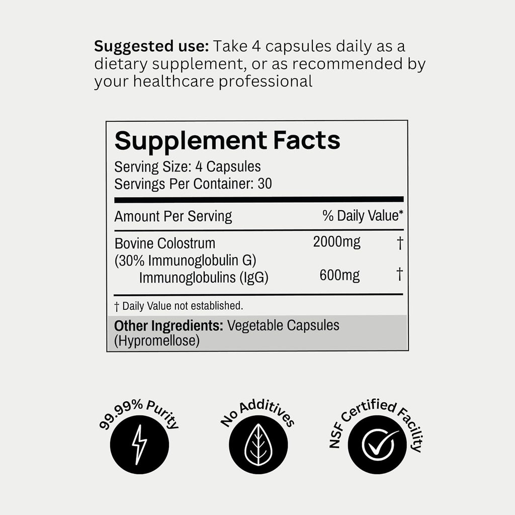 - ONLY 30% IGG CAPSULES (OVER UNAPPETIZING POWDERS): Get your colostrum intake with capsules not unappetizing colostrum powder, with a substantial 30% IgGs - ensuring potent immune system support and gut fortification.