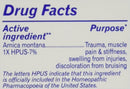 Active Ingredient: Arnica montana 1X HPUS 7%. (The letters HPUS indicate that the component in this product is officially monographed in the Homeopathic Pharmacopoeia of the United States.) Purpose: Arnica montana 1X HPUS Relieves muscle pain and stiffness, swelling from injuries, discoloration from bruises. NDC 0220-9000-59 (Human OTC Drug Label) *This product does not claim to be a cure for any disease or condition.