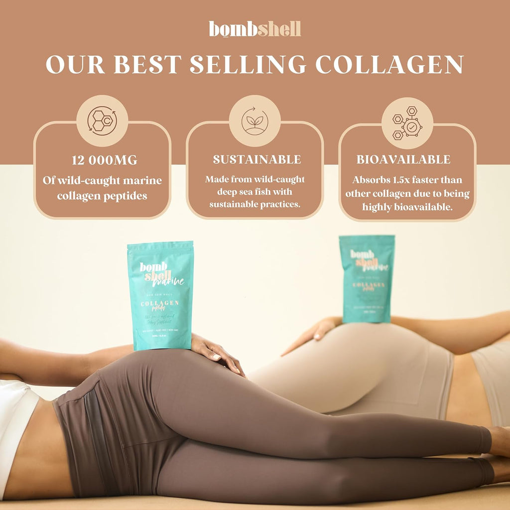 - Health Benefits -- Bombshell uses collagen peptides from 100% wild-caught fish which is specially formulated to support cellulite reduction, aid in sleep, boost metabolism, and boost healthy hair, nails, skin, gut health, and joint & bone health.**