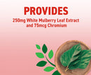 - Provides 250 mg of White Mulberry Leaf Extract and 75 mcg of Chromium Picolinate per serving