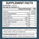 - WORKS FAST: Calm Gummies with 100mg GABA, 50mg L-Theanine, 200mg Ashwagandha, 2mg Melatonin and 75mg Lemon Balm