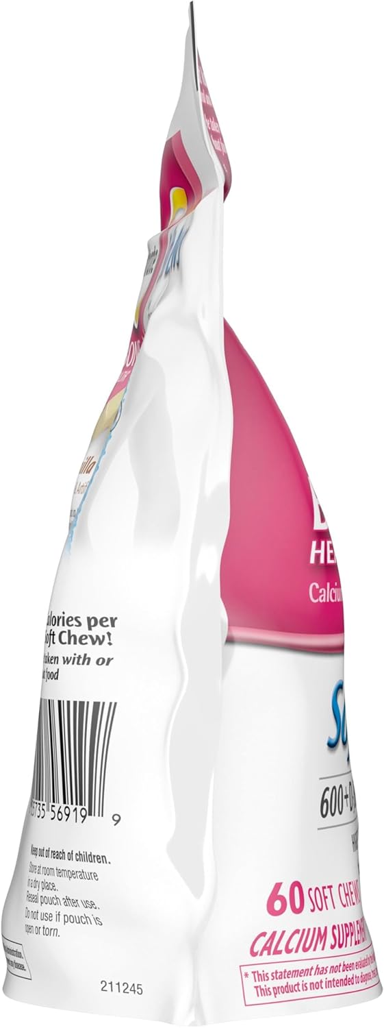 - 60 count bag of Vanilla Creme-flavored Caltrate Soft Chews 600 Plus D3 Calcium Vitamin D Supplement