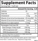 Vitamin A (from Cod Liver Oil), Vitamin D3 (from Cod Liver Oil), Vitamin E (as natural d-Alpha Tocopherol), Norwegian Cod Liver Oil, Total Omega-3 Fatty Acids, EPA (Eicosapentaenoic Acid), DHA (Docosahexaenoic Acid)
