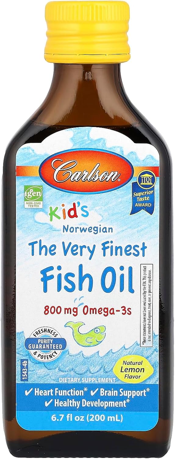 Kid's Norwegian The Very Finest Fish Oil in lemon flavor has received numerous awards for its taste and quality. To ensure maximum freshness, Kid's The Very Finest Fish Oil is closely managed from sea to store. We source the highest quality, deep, cold-water fish using traditional, sustainable methods. Kid's The Very Finest Fish Oil is then bottled with a touch of vitamin E and is given a nitrogen flush to remove oxygen and help prevent oxidation. Each teaspoon of Kid's The Very Finest Fish Oil provides 800 mg of omega-3s, including EPA and DHA, which support heart function, brain health, and healthy development. Like all Carlson omega-3s freshness, potency, and purity are guaranteed.