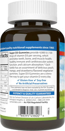 Our bodies produce vitamin D following sun exposure, which is why itÕs often called Òthe sunshine vitamin.Ó However, changing seasons, clothing, and sunscreen can make it difficult to get enough sun. And while itÕs possible to get vitamin D through our diet, few food sources contain enough vitamin D for most of us to reach the recommended daily intake. For those who have difficulty getting their vitamin D, a supplement may be a great option. Super D3 Gummies provide 4,000 IU (100 mcg) of vitamin D3 in every serving, which promotes teeth, bone, and muscle health; healthy immune and circulation system function; and calcium absorption. Each bottle has an assortment of strawberry, lemon, and orange flavored vegetarian gummies. Super D3 gummies are a stress-free way for your whole family to get their vitamin D every day.