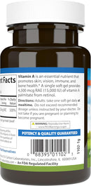 - 15,000 IU (4,500 mcg RAE) of vitamin A palmitate in a single soft gel