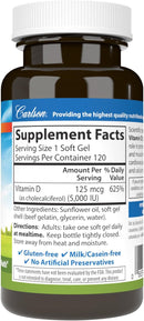- 5,000 IU (125 mcg) of vitamin D3 in a single soft gel