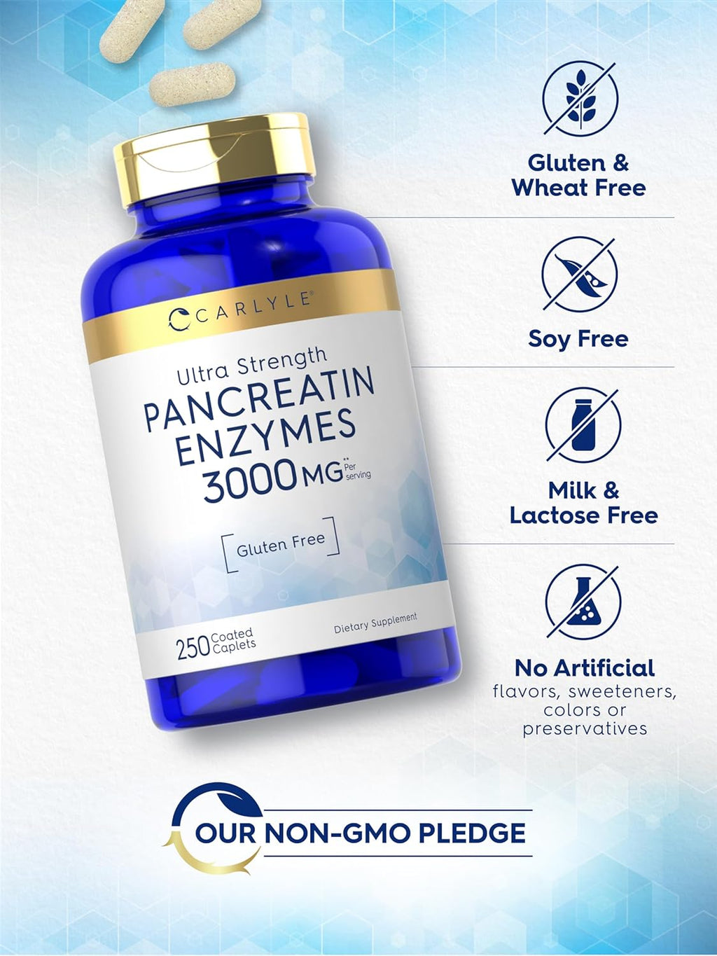 - ULTRA STRENGTH: Provides the equivalent of 3,000 mg of Pancreatin per serving in coated caplets