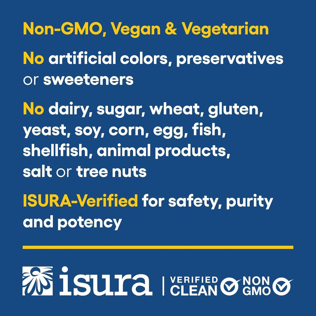 - One capsule: Taken twice daily; Vegan, non-GMO, free of gluten and soy