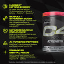 If you do Bulgarian Split Squats for fun at the end of leg day, this is the pre-workout for you. Introducing the Ultimate gain-changer: NEW C4 Ultimate Strength. Designed for those who thrive off the hardest-hitting workouts, our most robust blend features 300mg of Caffeine, TeaCrine®, and Dynamine™, for a tri-stim energy experience in combo with 3.2g of fatigue fighting CarnoSyn® Beta-Alanine + 1.25g of BetaPower ® that will give training to failure a whole new meaning. We turned up the volume on strength and muscle building with a powerhouse blend of 5.5g quality creatine compounds, 2.4g of AI-Powered PeptiStrong®, and 150mg of ElevATP® for increased strength, power and muscle mass. Next, we added 200mg of C4 Exclusive AI-powered peptide, PeptiPump® with a patented VELOX® blend of L-Citrulline, and L-Arginine for seriously satisfying pumps and performance. Step up your training with the new C4 Ultimate Strength pre-workout. ^Studies have shown benefits of CarnoSyn® Beta-Alanine to be correlated with cumulative use.