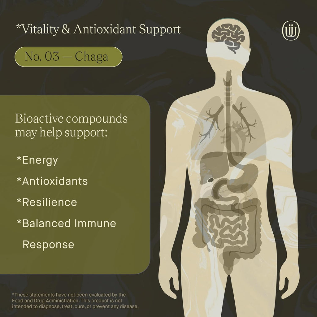 - Detox Your Body - Uphoric Urth Chaga mushroom is an upgrade for skin and within. This mushroom is extremely high in antioxidants which may help promote healthy hair, skin and nails. Chaga is also naturally rich in a wide variety of vitamins, minerals, and nutrients that may help with detoxification in the body.