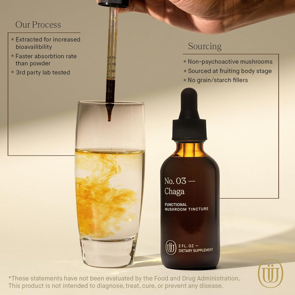 - High Potency Tincture - The benefits of medicinal mushrooms in tincture form include quick absorption, long shelf life and easily added to any food or beverage. Our tinctures use double extraction methods from the mushroom fruitbodies to more fully extract the wide range of bioactive compounds available. Also, liquid extracts are absorbed more quickly into the system, providing you with quick results.