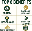 - π« 20g Chocolate Plant Protein in Every Scoop Fuel your day with 20g of clean, organic protein from peas and brown rice β perfectly blended with rich Chocolate flavor for smoothies, shakes, or baking.