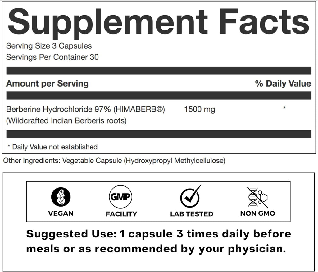 - Tested & Trusted ingredients - Our nutritional pure berberine hcl 500mg supplements are manufactured in GMP-compliant facilities that are US FDA-registered. Our 500 mg berberine powder capsules are non-GMO, gluten-free, and vegan-friendly, making it suitable for individuals with dietary restrictions.