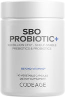 - Codeage SBO Probiotic+ offers a potent 100 billion CFUs (colony-forming units) per serving** with a comprehensive blend of 6 different strains of probiotics, including soil-based organisms probiotics and prebiotics.