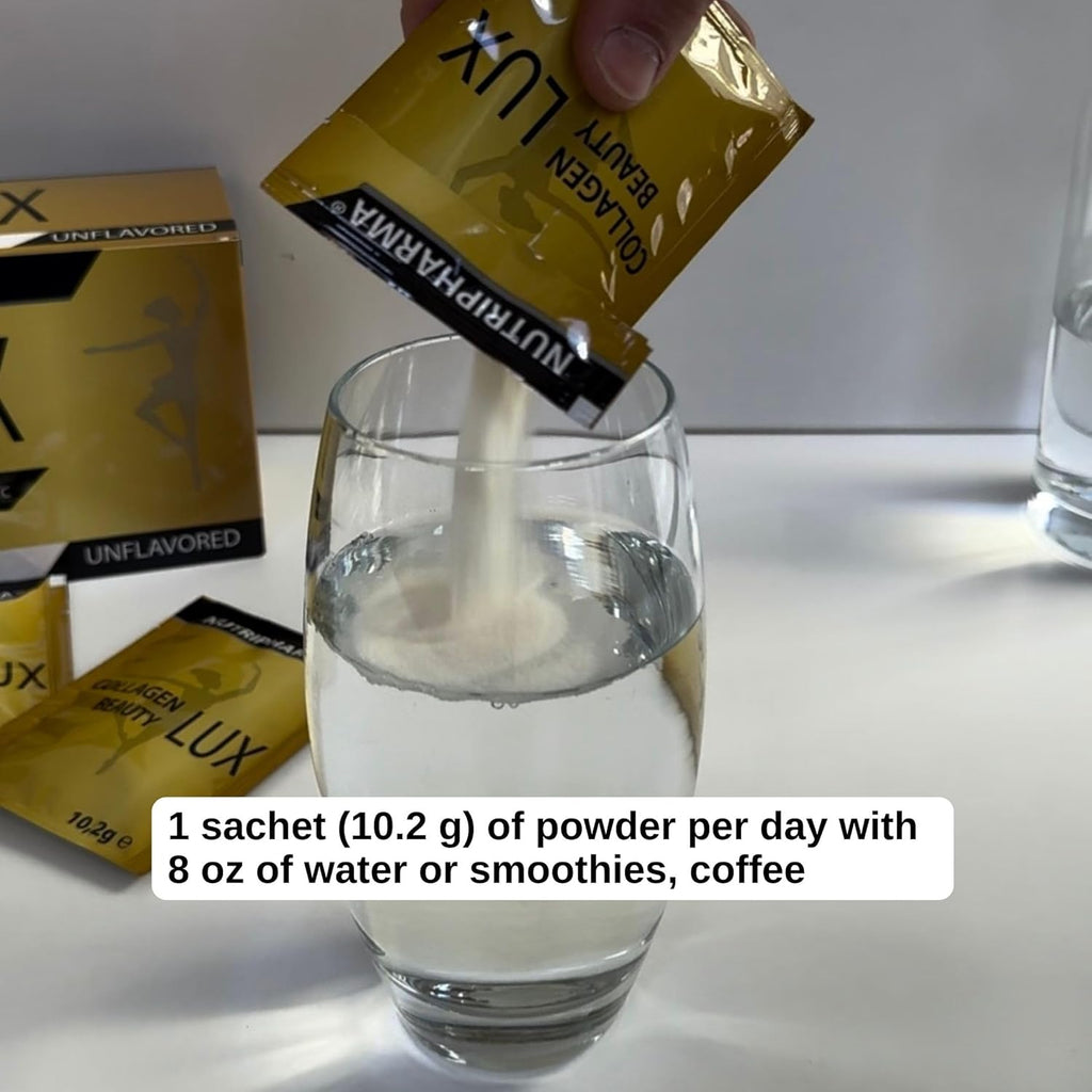 - PROMOTES SKIN, HAIR, AND NAILS: Nutripharma Collagen Beauty Lux is a powerful beauty supplement that helps reduce wrinkles, increase skin elasticity and give your skin a youthful appearance. Its formula contains These effective collagen supplement support skin health, reduce wrinkles, moisturize and rejuvenate your skin. Collagen powder support skin elasticity, strong nails and healthy hair & Perfect Collagen for women