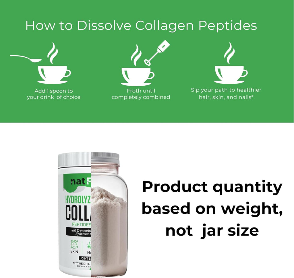Mix 1 scoop (11.16g) of Natful Collagen Peptides Powder daily into 200–300ml of water, coffee, juice, or a smoothie. Stir or shake well until fully dissolved. Best taken consistently for visible results in 4–8 weeks. Suitable for morning or post-workout use.