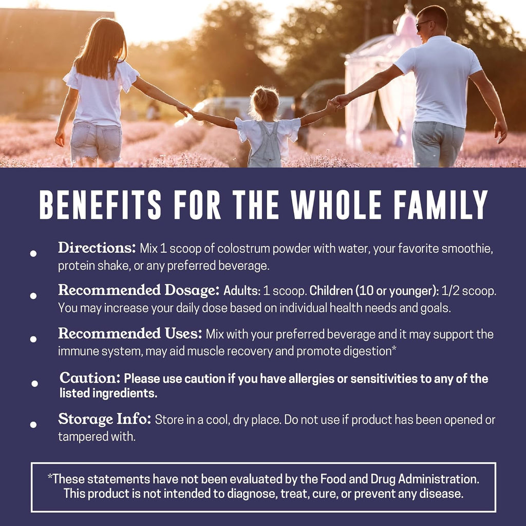 - NUTRIENT RICH, VERSATILE USE: Packed with vital components like Glycoproteins, Growth Factors, Immunoglobulins, Lactoferrin, and Lysozyme, our pure colostrum supplement offers a comprehensive blend of proteins to support your nutrition and recovery processes. Just mix with water, your favorite smoothie, yogurt, protein shake, or any preferred beverage.