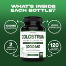- 2 MONTH SUPPLY - Each container of our Premium Colostrum Supplement includes 60 servings of 1,000mg Colostrum (120 capsules 500mg), enough to last you a full two months.