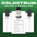 - PREMIUM COLOSTRUM - Our Bovine Colostrum Supplement contains a standardized level of 20% IgG immunoglobulins. Sourced from grass-fed cows, our colostrum capsules are designed for easy intake and provide a rich source of natural nutrients.
